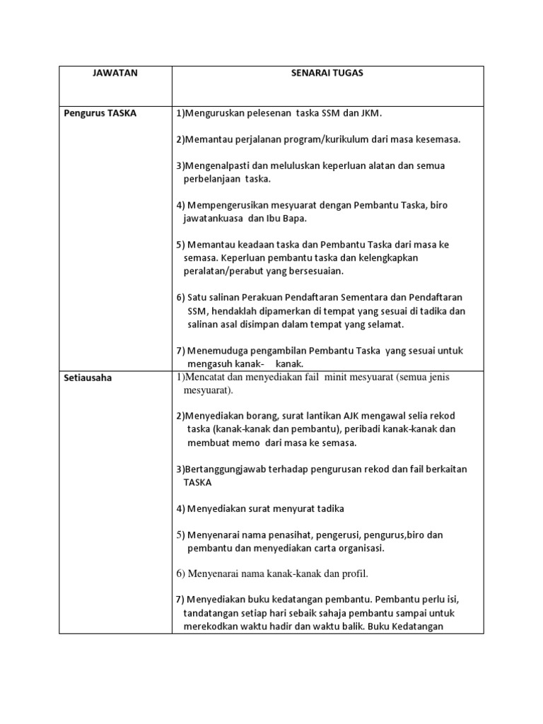 Senarai Tugas Guru Prasekolah Pdf