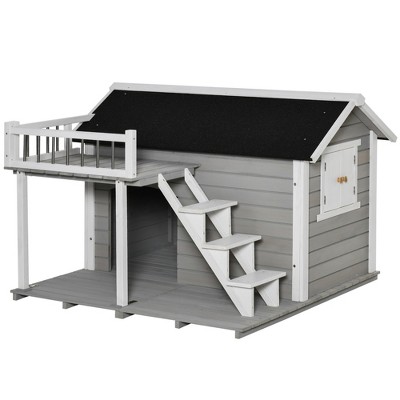 Pawhut Wooden Outdoor Dog House 2 Tier Raised Pet Shelter With Stairs Weather Resistant Roof And Balcony For Medium Large Sized Dogs Up To 55 Lbs Target